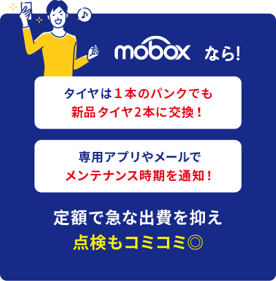 じつは以前乗っていたクルマでパンクしてしまい、修理しても空気が少しずつ抜けるようになってしまった経験があります。だからパンク補償が付いているmoboxを知ったとき、「これだっ」と思いました。